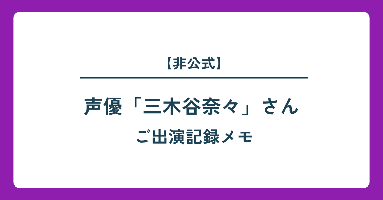 【非公式】声優「三木谷奈々」さん ご出演記録メモ